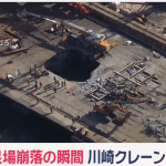 映像からは足場が崩れクレーンが